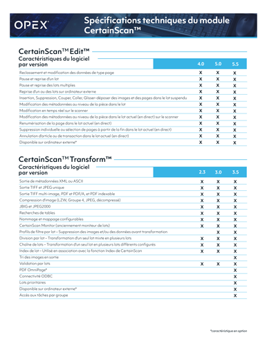 CertainScan Version Comparison (French)